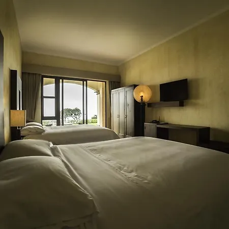 The resort offers rooms with a balcony and a seating area featuring a trouser press and climate control, along with a flat-screen TV with satellite channels. They are furnished with sound-proof windows, and also come with a mini fridge bar, coffee and tea makers. Bathrooms include a spa bathtub, a separate toilet, and a shower, along with comforts such as hair dryers and bath sheets.